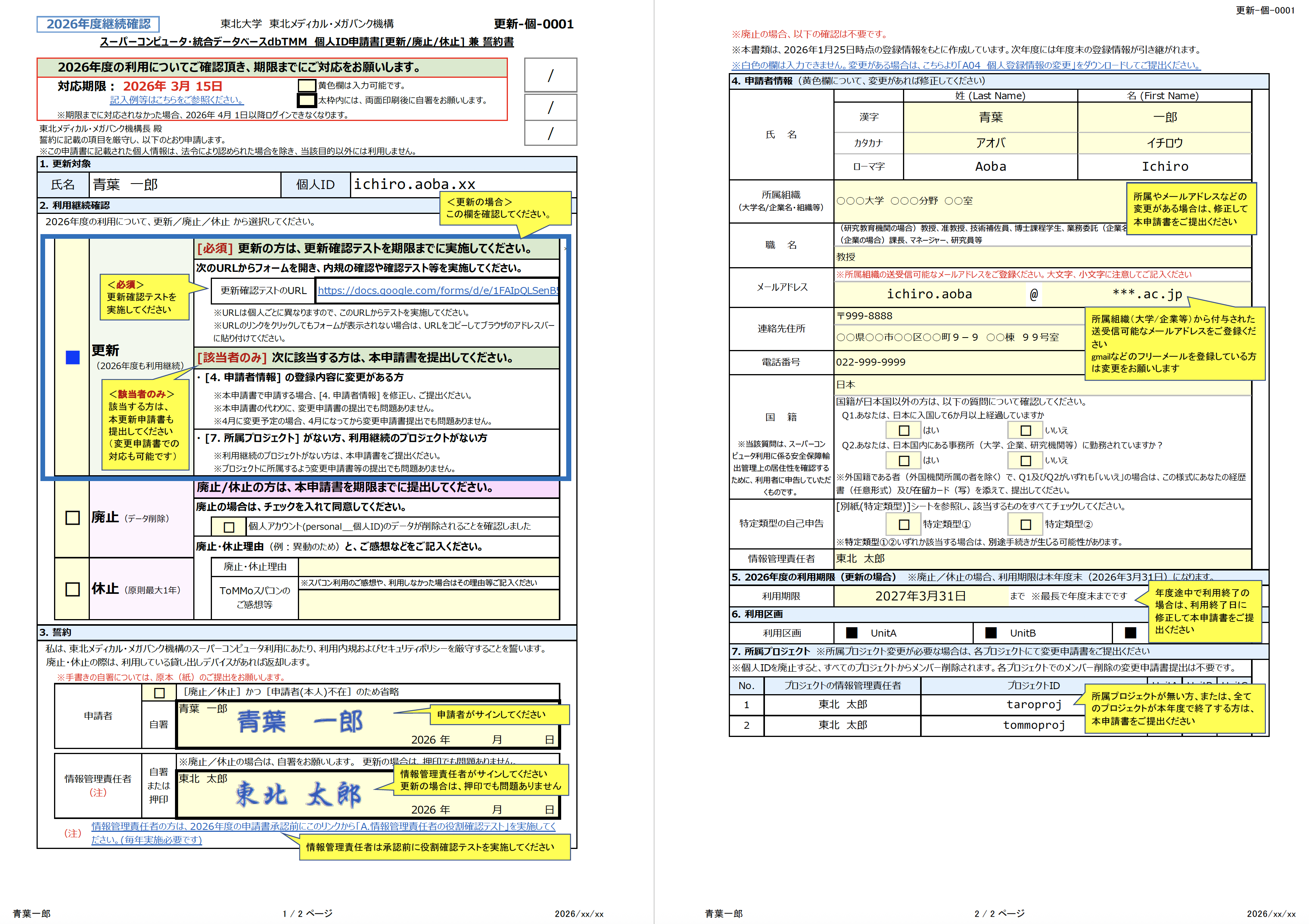 ここで説明しているのは、TMM事業および共同研究で利用しているアカウントの更新申請書です。